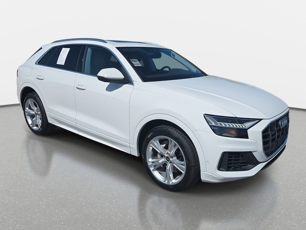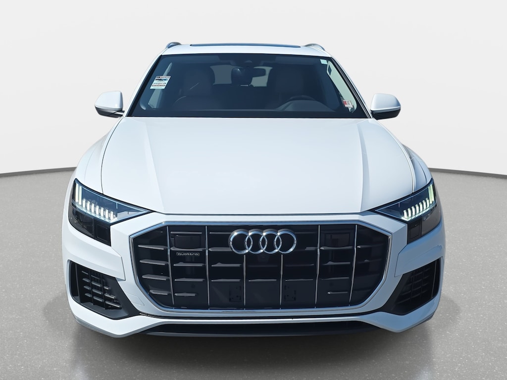 Carrara White 2023 Audi Q8 55 Premium quattro quattro 8-Speed Automatic with Tiptronic 3.0L V6 Turbocharged DOHC 24V LEV3-ULEV70 335hp Alloy wheels, Auto High-beam Headlights, Exterior Parking Camera Rear, Front dual zone A/C, Fully automatic headlights, Garage door transmitter: HomeLink, Genuine wood door panel insert, Headlight cleaning, Heated Front Bucket Seats, Leather steering wheel, Memory seat, Navigation system: Audi MMI Navigation plus with Touch Response, Power Liftgate, Power moonroof: Panoramic, Radio: Audi MMI Nav Plus w/MMI Touch Response, Rain sensing wipers, Rear air conditioning, Wheels: 21" 5-Segment-Spoke Design.