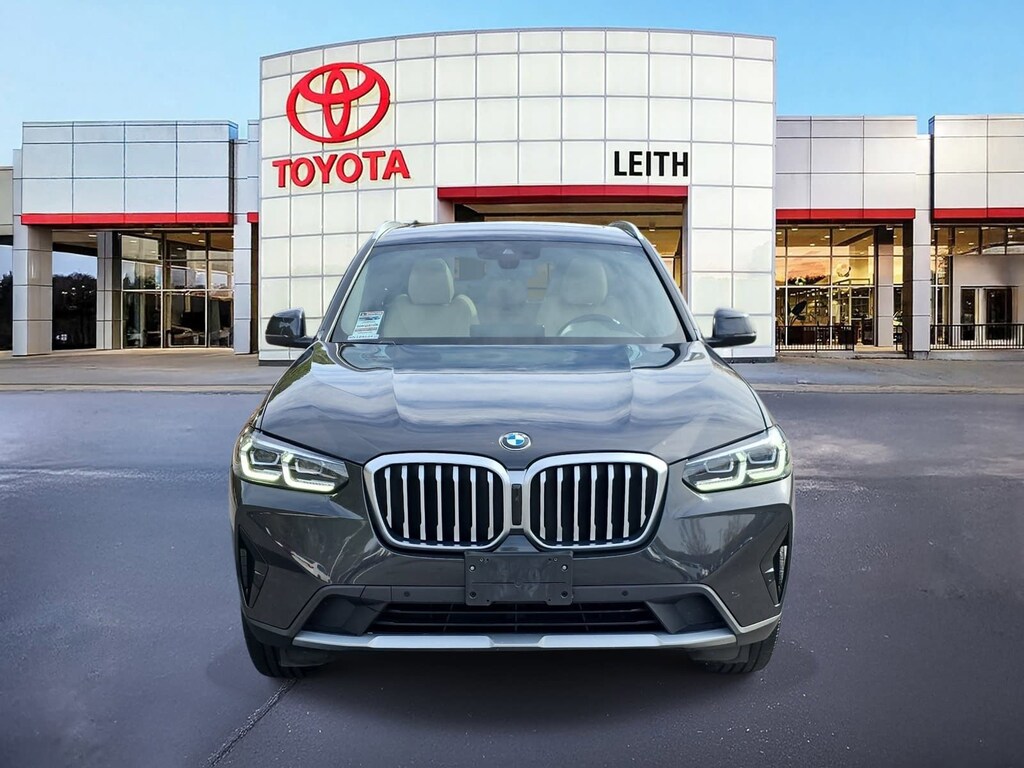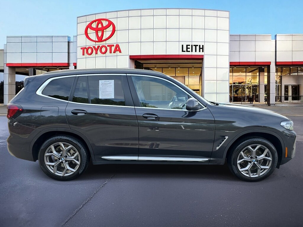 CARFAX One-Owner. Dark Graphite Metallic 2022 BMW X3 xDrive30i AWD 8-Speed Automatic Sport 2.0L I4 TwinPower Turbo LOCAL TRADE IN, BACK UP CAMERA, LEATHER, HEATED SEATS, PANORAMIC SUNROOF, NAVIGATION, BLIND SPOT MONITOR, ALL WHEEL DRIVE, SMART KEY W PUSH BUTTON START, APPLE CARPLAY & ANDROID AUTO, POWER LIFTGATE, MUST SEE TO APPRECIATE!, 8-Speed Automatic Sport, 12 Speakers, ABS brakes, Air Conditioning, AM/FM radio: SiriusXM with 360L, Apple CarPlay & Android Auto Compatibility, Auto High-beam Headlights, Comfort Access Keyless Entry, Connected Package Pro, Electronic Stability Control, Exterior Parking Camera Rear, Four wheel independent suspension, Front Center Armrest, Front dual zone A/C, Fully automatic headlights, Garage door transmitter, Genuine wood dashboard insert, Genuine wood door panel insert, Heated Front Seats, Live Cockpit Pro w/Navigation, Lumbar Support, Memory seat, Navigation System, Panoramic Moonroof (ZPA), Perforated SensaTec Upholstery, Power driver seat, Power Liftgate, Power steering, Power windows, Rear window defroster, Remote Engine Start, Split folding rear seat, Steering wheel mounted audio controls, Telescoping steering wheel, Traction control, Wheels: 19 x 7.5 Y-Spoke (Style 693).