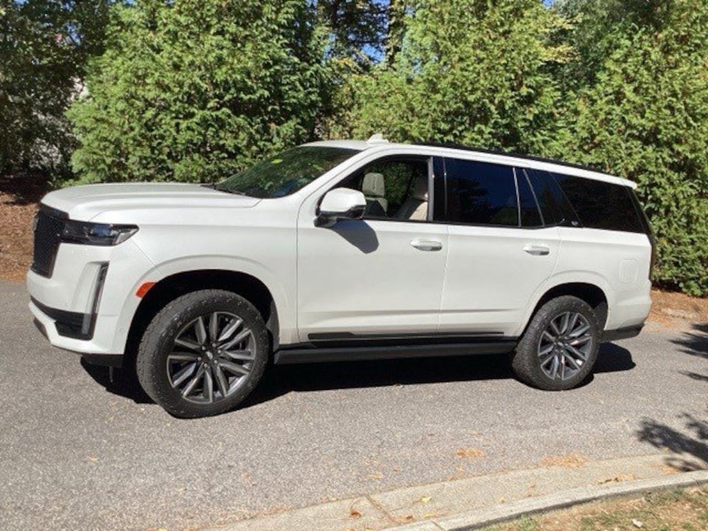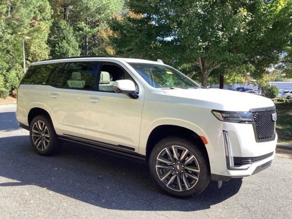 Crystal White Tricoat 2021 Cadillac Escalade Sport 10-Speed Automatic with Overdrive 6.2L V8 4WD, Whisper Beige With Jet Black Accents Leather, Adaptive Cruise Control, Air Ionizer, Air Ride Adaptive Suspension, AKG Studio 19-Speaker Audio System, Automatic Emergency Braking, Automatic Seat Belt Tightening, Body-Color Door Handles, Door Lock & Latch Shields, Driver Assist Tech Package, Electronic Cruise Control w/Set & Resume Speed, Electronic Limited-Slip Differential, Enhanced Automatic Emergency Braking, Enhanced Automatic Parking Assist, Glass Breakage Sensor, Hitch Guidance w/Hitch View, Illuminating Front & Rear Sill Plates, In-Vehicle Trailering System App, Integrated Trailer Brake Controller, Lane Keep Assist w/Lane Departure Warning, Navigation System, Power Panoramic Tilt-Sliding Sunroof, Preferred Equipment Group 1SC, Rear Camera Mirror, Rear Camera Mirror Washer, Rear Cross Traffic Alert, Reconfigurable Full-Color Head-Up Display, Reverse Automatic Braking, Running Board Assist Steps, Soft Closing Front & Rear Doors, Theft-Deterrent Alarm System, Trailer Side Blind Zone Alert, Vehicle Inclination Sensor, Vehicle Interior Movement Sensor.