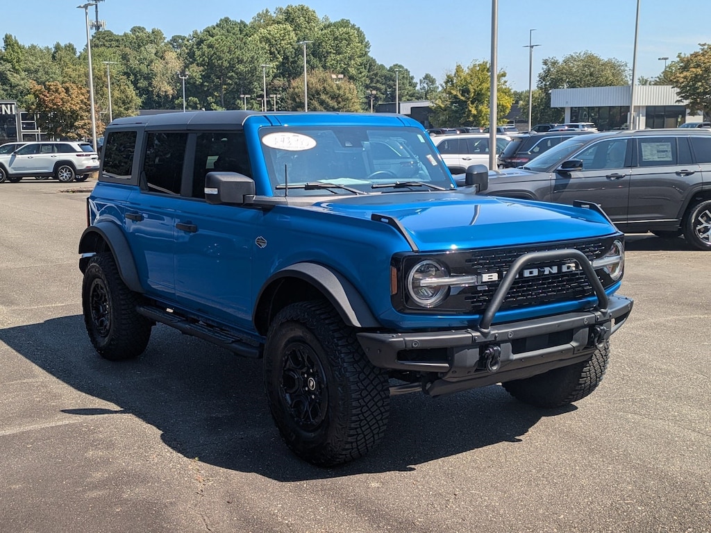 Velocity Blue Metallic 2022 Ford Bronco Wildtrak 4WD 10-Speed Automatic 2.7L EcoBoost V6 12" LCD Capacitive Touchscreen w/Swipe Capability, 2 Smart Charging USB Ports In Dashboard, 360-Degree Camera, Adaptive Cruise Control, Additional Sound Deadening, Connected Built-In Navigation, Equipment Group 354A Lux Package, Evasive Steering Assist, Front Parking Sensors, Heated Steering Wheel, Information on Demand Panel, Navigation system: Connected Navigation, Power door mirrors, Radio: B&O Sound System by Bang & Olufsen, Sideview Mirrors, Universal Garage Door Opener, Wireless Charging Pad.