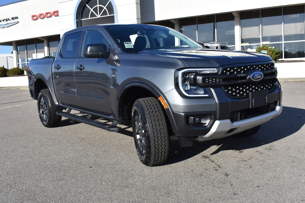 CARFAX One-Owner. Carbonized Gray Metallic 2024 Ford Ranger XLT 4WD 10-Speed Automatic EcoBoost 2.3L I4 GTDi DOHC Turbocharged VCT 12" Display in Center Stack, 4-Wheel Disc Brakes, 6 Speakers, ABS brakes, Advanced Towing Package, Air Conditioning, Alloy wheels, AM/FM radio: SiriusXM, AM/FM Stereo, Auto High-beam Headlights, Auto-dimming Rear-View mirror, Black Running Boards, Body-Color SecuriCode Keyless Entry Keypad, Brake assist, Class IV Trailer Hitch Receiver, Compass, Delay-off headlights, Dual front impact airbags, Dual front side impact airbags, Dual-Zone Electronic Climate Control (DEATC), Electronic Stability Control, Electronic-Locking Rear Differential, Emergency communication system: SYNC 4 911 Assist, Equipment Group 301A High, Front anti-roll bar, Front fog lights, Front wheel independent suspension, Fully automatic headlights, FX4 Off-Road Box Decal, FX4 Off-Road Package, FX4 Selectable Drive Modes, Gray Painted Center Bar & Grille Surround, Gray Painted Front Fascia & Rear Bumper, Gray Painted Wheel Lip Molding, Illuminated entry, Integrated Box Side Step, Leather Shift Knob, Low tire pressure warning, Navigation system: Connected Navigation, Occupant sensing airbag, Off-Road Screen in Center Stack, Off-Road Tuned Shocks, Outside temperature display, Overhead airbag, Panic alarm, Power door mirrors, Power steering, Power windows, Power-Sliding Rear Window, Premium Cloth Front Bucket Seats, Premium Cloth Front Heated Bucket Seats, Pro Trailer Backup Assist, Rear step bumper, Rear window defroster, Remote keyless entry, Security system, SiriusXM Satellite Radio, Speed control, Speed-sensing steering, Sport Appearance Package, Sport Box Decal, Steering wheel mounted audio controls, SYNC 4A w/Connected Navigation, Telescoping steering wheel, Tilt steering wheel, Tough Bed Spray-In Bedliner, Traction control, Trailer Brake Controller, Trailer Tow Package, Tray Style Floor Liner, Trip computer, Variably intermittent wipers, Voltmeter, Wheels: 17" Gray-Painted Aluminum.