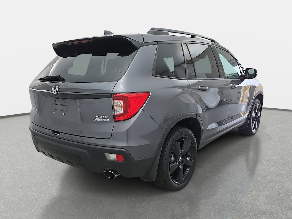 Modern Steel Metallic 2021 Honda Passport Elite AWD 9-Speed Automatic 3.5L V6 24V SOHC i-VTEC 10 Speakers, 4-Wheel Disc Brakes, 4.334 Axle Ratio, A/V remote: CabinControl, ABS brakes, Air Conditioning, Alloy wheels, AM/FM radio: SiriusXM, Apple CarPlay/Android Auto, Auto High-beam Headlights, Auto-dimming door mirrors, Auto-dimming Rear-View mirror, Automatic temperature control, Blind Spot Information (BSI) System warning, Brake assist, Bumpers: body-color, Compass, Delay-off headlights, Driver's Seat Mounted Armrest, Dual front impact airbags, Dual front side impact airbags, Electronic Stability Control, Emergency communication system: HondaLink, Exterior Parking Camera Rear, Forward collision: Collision Mitigation Braking System (CMBS) + FCW mitigation, Four wheel independent suspension, Front anti-roll bar, Front dual zone A/C, Front fog lights, Fully automatic headlights, Garage door transmitter: HomeLink, Heated & Ventilated Front Bucket Seats, Heated door mirrors, Heated front seats, Heated rear seats, Heated steering wheel, Illuminated entry, Lane departure: Lane Keeping Assist System (LKAS) active, Low tire pressure warning, Memory seat, Navigation system: Honda Satellite-Linked Navigation System, Occupant sensing airbag, Outside temperature display, Overhead airbag, Overhead console, Panic alarm, Passenger seat mounted armrest, Perforated Leather-Trimmed Seats, Power door mirrors, Power driver seat, Power Liftgate, Power moonroof, Power passenger seat, Power steering, Power windows, Radio data system, Radio: 540-Watt Premium Audio System w/10 Speakers, Rain sensing wipers, Rear air conditioning, Rear anti-roll bar, Rear seat center armrest, Rear window defroster, Rear window wiper, Remote keyless entry, Roof rack: rails only, Security system, Speed control, Speed-sensing steering, Split folding rear seat, Spoiler, Steering wheel mounted audio controls, Tachometer, Telescoping steering wheel, Tilt steering wheel, Traction control, Trip computer, Turn signal indicator mirrors, Variably intermittent wipers, Ventilated front seats, Wheels: 20" Solid-Spoke Gloss Black Alloy.