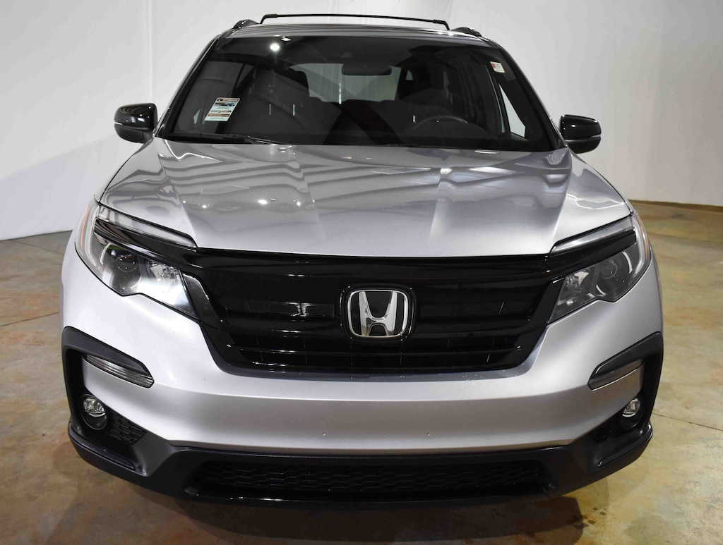 CARFAX One-Owner. Certified. Lunar Silver Metallic 2022 Honda Pilot Sport AWD 9-Speed Automatic 3.5L V6 24V SOHC i-VTEC 3rd row seats: split-bench, 4-Wheel Disc Brakes, 4.33 Axle Ratio, 7 Speakers, A/V remote: CabinControl, ABS brakes, Air Conditioning, Alloy wheels, AM/FM radio: SiriusXM, Apple CarPlay/Android Auto, Auto High-beam Headlights, Automatic temperature control, Blind Spot Information (BSI) System warning, Brake assist, Bumpers: body-color, Cloth Seat Trim, Delay-off headlights, Dual front impact airbags, Dual front side impact airbags, Electronic Stability Control, Emergency communication system: HondaLink Assist, Exterior Parking Camera Rear, Forward collision: Collision Mitigation Braking System (CMBS) + FCW mitigation, Four wheel independent suspension, Front anti-roll bar, Front dual zone A/C, Front fog lights, Fully automatic headlights, Heated door mirrors, Heated Front Bucket Seats, Heated front seats, Illuminated entry, Lane departure: Lane Keeping Assist System (LKAS) active, Low tire pressure warning, Occupant sensing airbag, Outside temperature display, Overhead airbag, Panic alarm, Power door mirrors, Power driver seat, Power steering, Power windows, Radio data system, Radio: 215-Watt Audio System, Rear air conditioning, Rear anti-roll bar, Rear seat center armrest, Rear window defroster, Rear window wiper, Reclining 3rd row seat, Remote keyless entry, Roof rack: rails only, Security system, Speed control, Speed-sensing steering, Speed-Sensitive Wipers, Split folding rear seat, Spoiler, Steering wheel mounted audio controls, Tachometer, Telescoping steering wheel, Tilt steering wheel, Traction control, Trip computer, Turn signal indicator mirrors, Variably intermittent wipers, Wheels: 20" Pewter Gray Alloy.