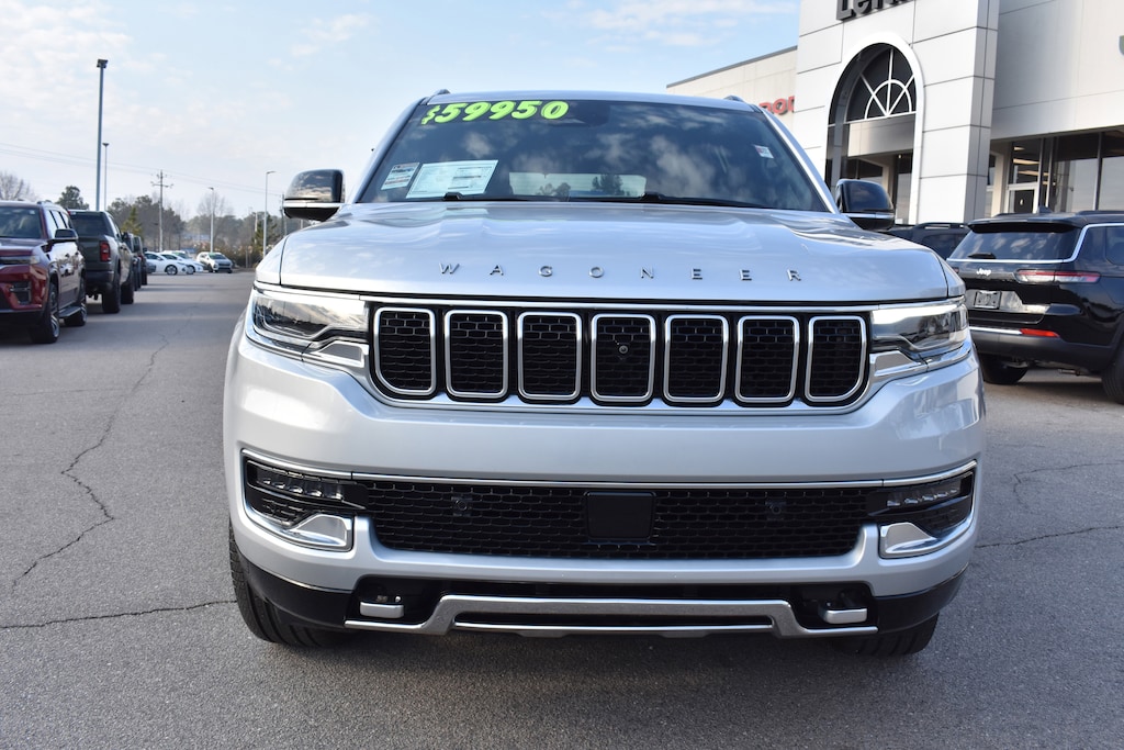 Clean CARFAX. CARFAX One-Owner. Silver Zynith 2024 Jeep Wagoneer Series III 4WD 8-Speed Automatic 3.0L I6 10 Speakers, 19 Speaker McIntosh Audio System, 2nd Row Manual Window Shades, 3 Panel Sunroof, 3.92 Rear Axle Ratio, 3rd row seats: bench, 4-Wheel Disc Brakes, ABS brakes, Adjustable pedals, Adjustable Roof Rail Crossbars, Air Conditioning, All-Season Floor Mats, Alloy wheels, AM/FM radio: SiriusXM with 360L, Amazon Fire TV Built-In, Anti-whiplash front head restraints, Apple CarPlay/Android Auto, Audio memory, Auto High-beam Headlights, Auto-dimming door mirrors, Auto-dimming Rear-View mirror, Auto-leveling suspension, Automatic temperature control, Brake assist, Bumpers: body-color, Cargo Cover, Cargo Tray, Chrome Tow Hooks, Compass, Convenience Group I, Delay-off headlights, Drowsy Driver Detection, Dual front impact airbags, Dual front side impact airbags, Electronic Rear Limited Slip Differential, Electronic Stability Control, Emergency communication system: Wagoneer Connect, Exterior Parking Camera Rear, Four wheel independent suspension, Front anti-roll bar, Front dual zone A/C, Front fog lights, Fully automatic headlights, Garage door transmitter, Genuine wood console insert, Genuine wood dashboard insert, Genuine wood door panel insert, HD Trailer Tow Package, Heated door mirrors, Heated front seats, Heated rear seats, Heated steering wheel, Heavy-Duty Engine Cooling, Illuminated entry, Intersection Collision Assist System, Knee airbag, Leather Trimmed Bucket Seats, Locking In-Vehicle Safe, Low tire pressure warning, Luxury Front & Rear Floor Mats, Memory seat, MOPAR Interior Protection Package, Navigation System, Normal Duty Suspension, Occupant sensing airbag, Outside temperature display, Overhead airbag, Overhead console, P&P Park & Unpark Assist w/Stop System, Panic alarm, Pedal memory, Power adjustable front head restraints, Power Deployable Running Boards, Power door mirrors, Power driver seat, Power Liftgate, Power passenger seat, Power steering, Power windows, Premium Group I, Quick Order Package 25N, Radio data system, Radio: Uconnect 5 Nav w/10.1" Display, Rain sensing wipers, Rear air conditioning, Rear anti-roll bar, Rear dual zone A/C, Rear Seat Video Group 1, Rear window defroster, Rear window wiper, Reclining 3rd row seat, Remote keyless entry, Removable Rear Tow Hook, Reversible Carpet/Vinyl Cargo Mat, Seatback Video Screens, Security system, Selec-Speed Control, Side Distance Warning, Speed control, Speed-sensing steering, Speed-Sensitive Wipers, Split folding rear seat, Steering wheel memory, Steering wheel mounted audio controls, Surround View Camera System, Tachometer, Telescoping steering wheel, Tilt steering wheel, Traction control, Traffic Sign Recognition, Trailer Brake Control, Trailer Hitch Zoom, Trip computer, Turn signal indicator mirrors, Variably intermittent wipers, Ventilated front seats, Video USB Port, Voltmeter, Wheels: 22" x 9.0" Premium 3 Aluminum.
