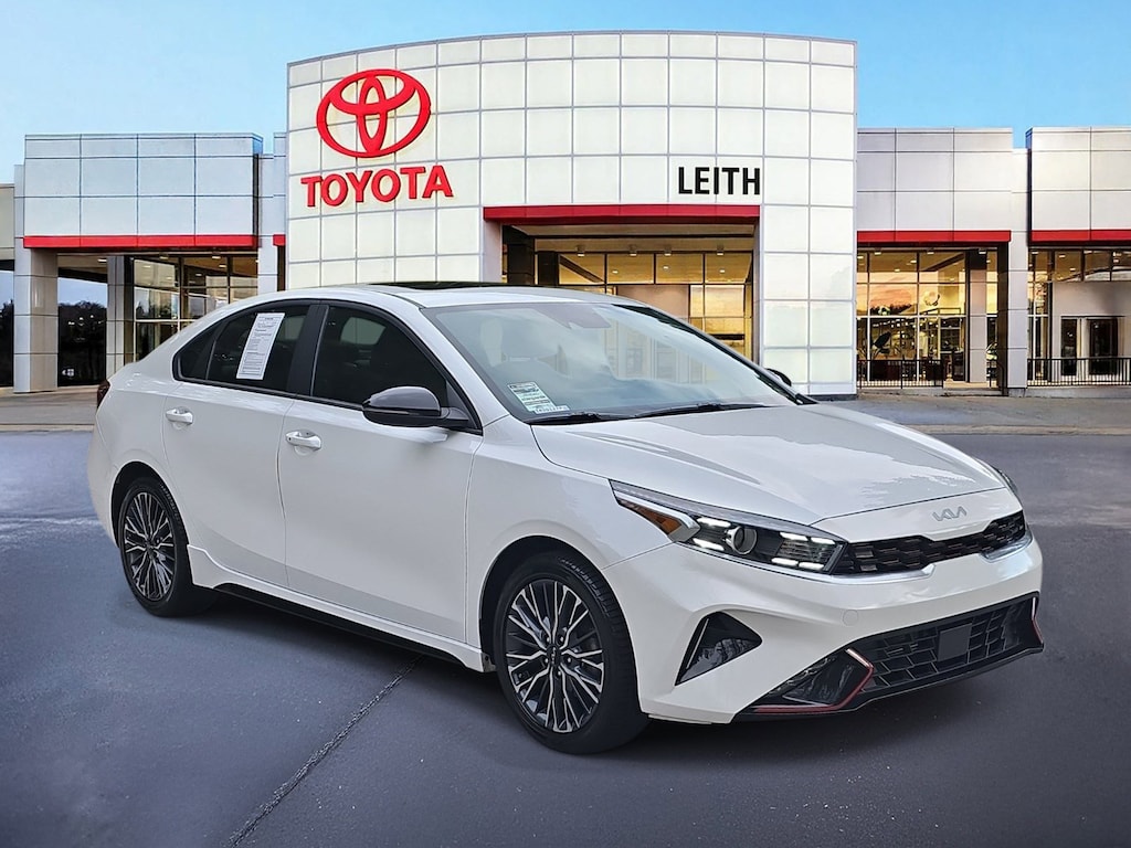 Clean CARFAX. Snow White Pearl 2022 Kia Forte GT-Line FWD CVT 2.0L 4-Cylinder MPI LOCAL TRADE IN, BACK UP CAMERA, LEATHER, HEATED SEATS, SUNROOF, NAVIGATION, BLIND SPOT MONITOR, SMART KEY W PUSH BUTTON START, LANE DEPARTURE ALERT W STEERING ASSIST, APPLE CARPLAY & ANDROID AUTO, NO ACCIDENTS, MUST SEE!, ABS brakes, Air Conditioning, Apple CarPlay & Android Auto, Auto High-beam Headlights, Cloth & Leatherette Seat Trim, Electronic Parking Brake (EPB) w/Auto Hold, Electronic Stability Control, Exterior Parking Camera Rear, Forward Collision Avoidance-Assist - Cyclist, Front dual zone A/C, Front wheel independent suspension, Fully automatic headlights, GT-Line Premium Package, Highway Driving Assist (HDA), Leather Shift Knob, Leather steering wheel, Navigation System, Navigation-Based Smart Cruise Control (NSCC), Overhead LED Front & Rear Reading Lamps, Power steering, Power Sunroof, Power windows, Radio: AM/FM/MP3 harman/kardon Premium Audio System, Rear window defroster, Smart Cruise Control, Steering wheel mounted audio controls, Telescoping steering wheel, Traction control, Turn signal indicator mirrors, Wheels: 17" Graphite Finish Alloy, Wireless Charging.