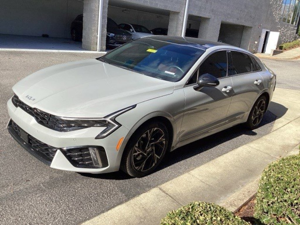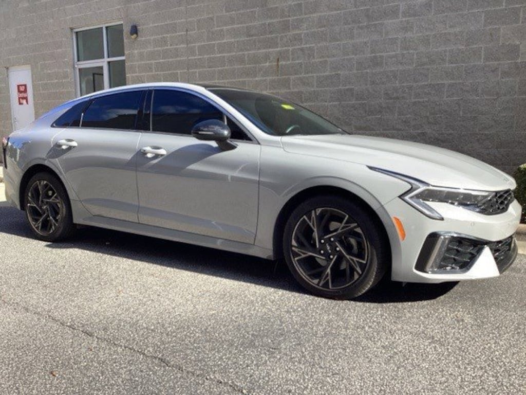 Wolf Gray 2025 Kia K5 GT-Line 8-Speed Automatic I4 Active Sound Design, Bose Premium Audio, GT-Line Premium Package, GT-Line Red Interior Package, LED Interior Lighting, Navigation System, Panoramic Sunroof, SynTex Seat Trim, Wheels: 18" x 7.5J Gloss Black Machined Finish Alloy.