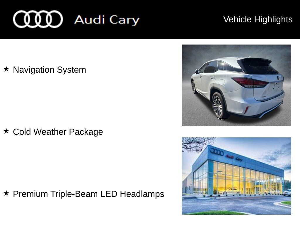 Eminent White Pearl 2022 Lexus RX 350L 8-Speed Automatic 3.5L V6 DOHC 24V FWD CARFAX One-Owner. Clean CARFAX. Parchment w/Semi-Aniline Leather Seat Trim, Cold Weather Package, Navigation System, Premium Triple-Beam LED Headlamps.