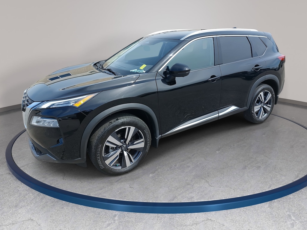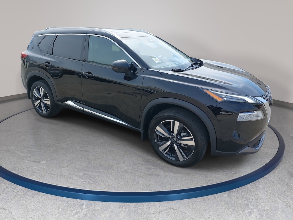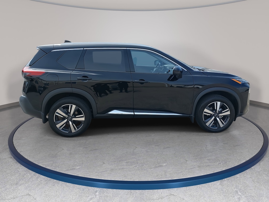 Super Black 2023 Nissan Rogue SL FWD CVT with Xtronic 1.5L I3 Turbocharged DOHC 12V LEV3-ULEV50 201hp 19" Aluminum Alloy Wheels, 4-Wheel Disc Brakes, 5.604 Axle Ratio, 6 Speakers, ABS brakes, Air Conditioning, Alloy wheels, AM/FM Radio, AM/FM radio: SiriusXM, Auto High-beam Headlights, Auto-dimming Rear-View mirror, Automatic temperature control, Black Splash Guards (Set of 4), Brake assist, Bumpers: body-color, Chrome Rear Bumper Protector, Delay-off headlights, Dual front impact airbags, Dual front side impact airbags, Electronic Stability Control, Emergency communication system: NissanConnect Services, First Aid Kit, Four wheel independent suspension, Front anti-roll bar, Front dual zone A/C, Fully automatic headlights, Heated door mirrors, Heated Front Bucket Seats, Heated front seats, Heated steering wheel, Illuminated entry, Knee airbag, Leather steering wheel, Leather-Appointed Seat Trim, Low tire pressure warning, Memory seat, NissanConnect featuring Apple CarPlay and Android Auto, Occupant sensing airbag, Overhead airbag, Panic alarm, Power door mirrors, Power driver seat, Power Liftgate, Power moonroof, Power passenger seat, Power steering, Power windows, Radio data system, Rear anti-roll bar, Rear Parking Sensors, Rear side impact airbag, Rear window defroster, Rear window wiper, Remote keyless entry, Security system, Speed control, Speed-Sensitive Wipers, Split folding rear seat, Spoiler, Steering wheel mounted audio controls, Tachometer, Telescoping steering wheel, Tilt steering wheel, Traction control, Trip computer, Turn signal indicator mirrors, Variably intermittent wipers.
