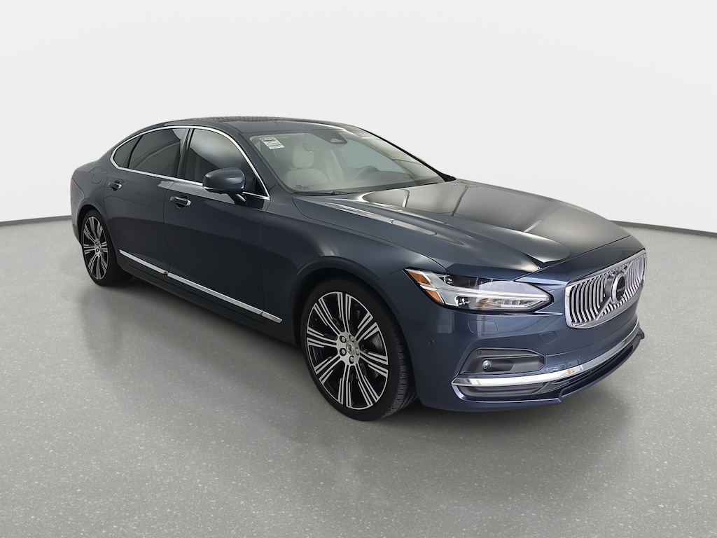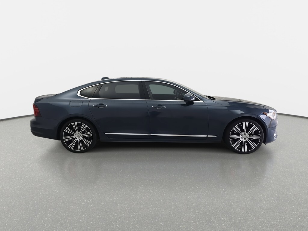 Blue 2022 Volvo S90 B6 Inscription 2.0L I4 Turbocharged 14 Speakers, 4-Wheel Disc Brakes, ABS brakes, Air Conditioning, Alloy wheels, AM/FM radio: SiriusXM, Anti-whiplash front head restraints, Auto High-beam Headlights, Auto-dimming door mirrors, Auto-dimming Rear-View mirror, Automatic temperature control, Bodyside moldings, Brake assist, Bumpers: body-color, Delay-off headlights, Driver door bin, Driver vanity mirror, Dual front impact airbags, Dual front side impact airbags, Electronic Stability Control, Emergency communication system, Exterior Parking Camera Rear, Four wheel independent suspension, Front anti-roll bar, Front Bucket Seats, Front Center Armrest w/Storage, Front dual zone A/C, Front fog lights, Front reading lights, Fully automatic headlights, Garage door transmitter: HomeLink, Genuine wood console insert, Genuine wood dashboard insert, Genuine wood door panel insert, harman/kardon® Premium Sound System, harman/kardon® Speakers, Heated & Ventilated Front Bucket Seats, Heated door mirrors, Heated front seats, Illuminated entry, Knee airbag, Leather Shift Knob, Low tire pressure warning, Memory seat, Nappa Leather Seating Surfaces, Navigation system: Sensus Navigation, Occupant sensing airbag, Outside temperature display, Overhead airbag, Panic alarm, Passenger door bin, Passenger vanity mirror, Power door mirrors, Power driver seat, Power moonroof, Power passenger seat, Power steering, Power windows, Premium audio system: Sensus Connect, Radio data system, Rain sensing wipers, Rear air conditioning, Rear anti-roll bar, Rear dual zone A/C, Rear fog lights, Rear reading lights, Rear seat center armrest, Rear Window Blind, Rear window defroster, Remote keyless entry, Security system, Speed control, Speed-sensing steering, Split folding rear seat, Steering wheel mounted audio controls, Tachometer, Telescoping steering wheel, Tilt steering wheel, Traction control, Trip computer, Turn signal indicator mirrors, Variably intermittent wipers, Ventilated front seats, Wheels: 19" 10-Spoke Black Diamond Cut Alloy.